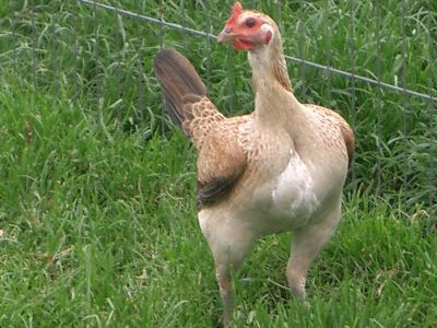 HENNE: Wie gold-weizenfarbige Henne, doch Weiß an Stelle von Schwarz.